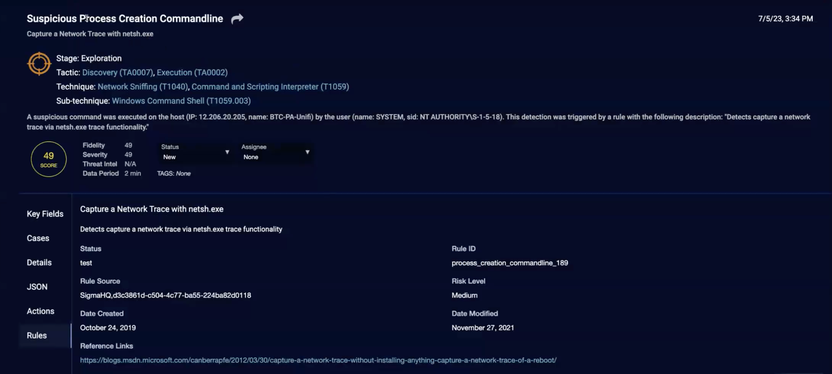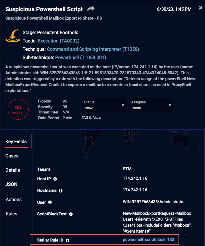 To get the Knowledge Base description for rule-based alerts, in the Key Fields, click the Stellar Rule ID link, for example, powershell_scriptblock_133.