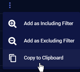 Click a cell to see additional actions you can perform, from copying the contents of the cell to the clipboard to using the cell data as an include or exclude filter. The exact actions depend on the table and cell data type; see the example below: