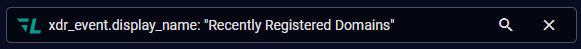 Use the global search bar to search the Alerts table for all alerts of a specific type by including the Interflow key of xdr_event.display_name followed by the name of the Alert Type you want to search for in quotation marks. For example, to search for the Recently Registered Domains alert type, you would enter the following in the search bar:
