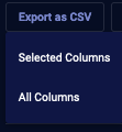 Click Export as CSV to download the table as a CSV file, suitable for import to a spreadsheet application. You can choose to export the table with the displayed columns only, or all columns, even if not displayed.