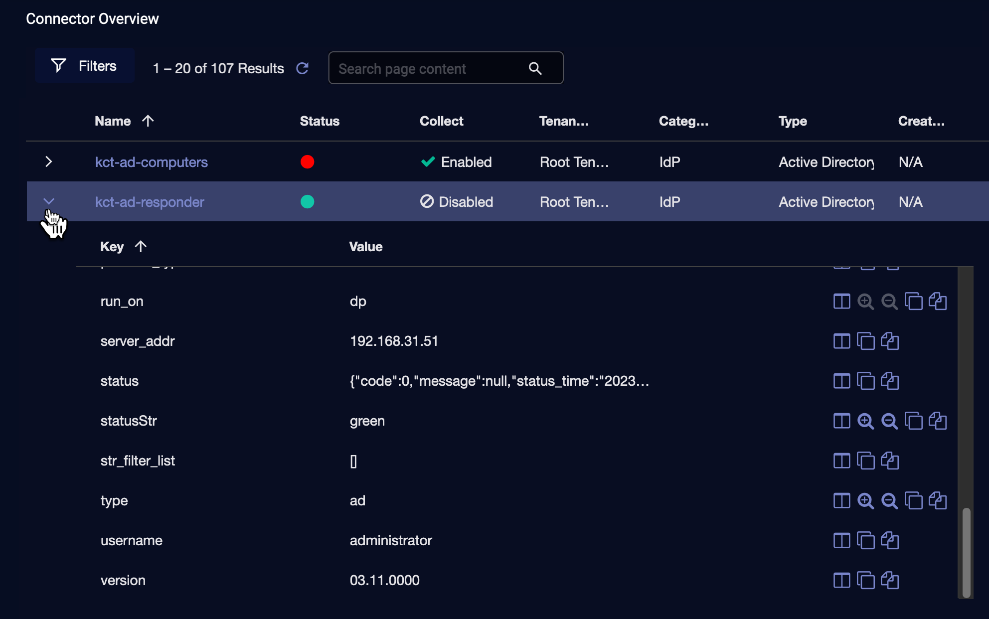 Disabled status: This indicates that the connector supports the Collect function but the feature is not enabled. You can edit the connector to activate the function.