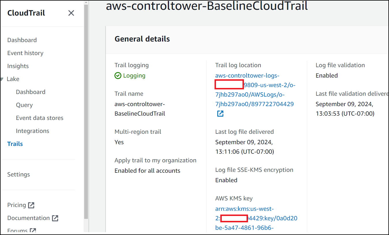 "aws:SourceArn": "arn:aws:cloudtrail:YOUR-HOME-REGION:YOUR-MANAGEMENT-ACCOUNT-ID:trail/aws-controltower-BaselineCloudTrail"