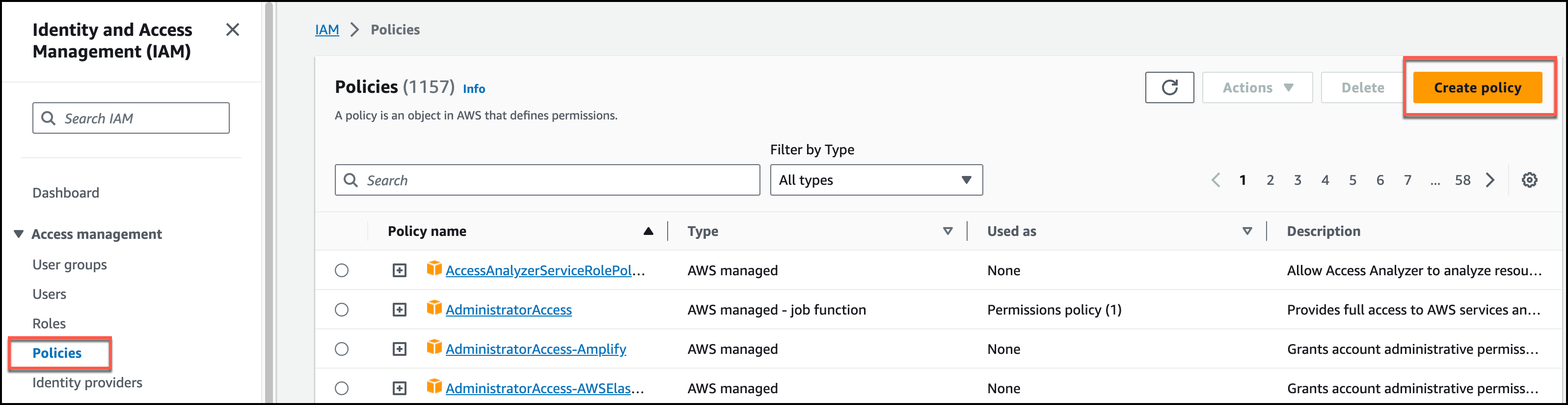 On the Set permissions page, choose Attach policies directly. Then search for the policy you created above.