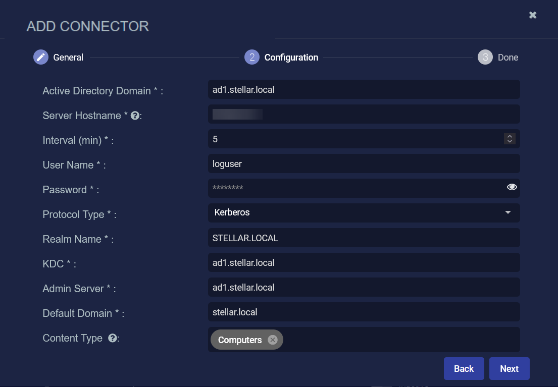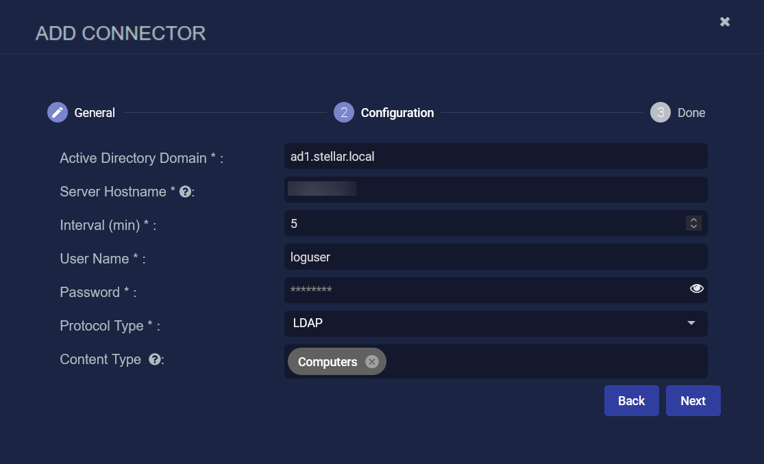 Enter the Active Directory Domain to be monitored, for example, ad1.stellar.local.