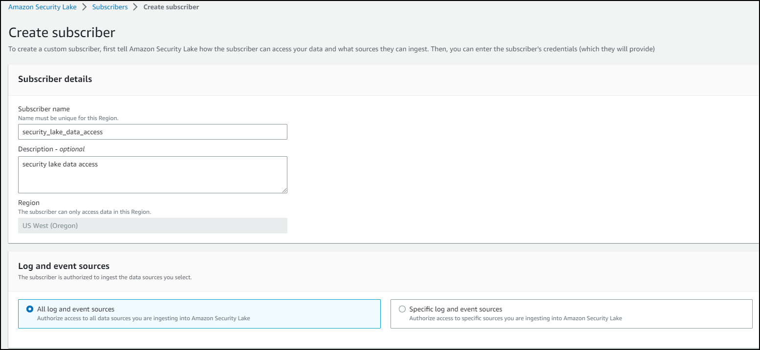 Choose Amazon Security Lake from the Type drop-down.