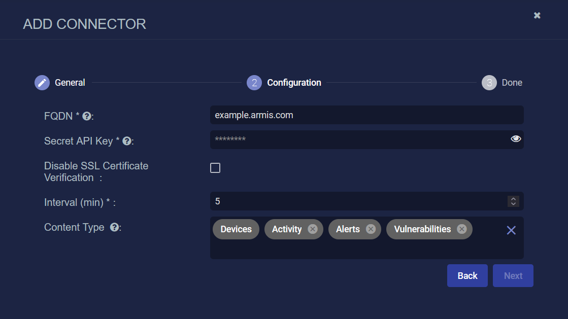 Configuring Armis Connectors