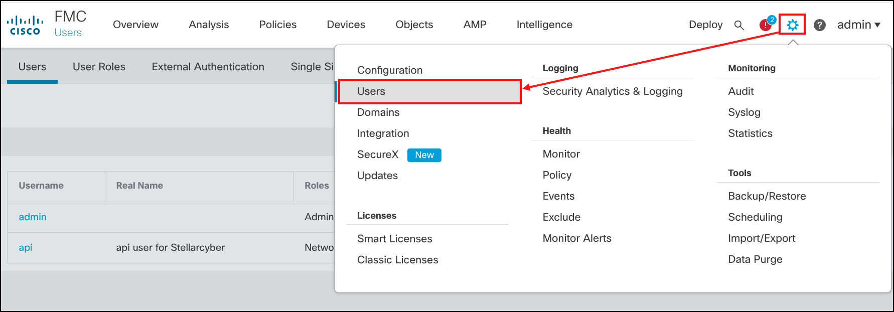 Log into the Cisco FMC console as an administrative user.