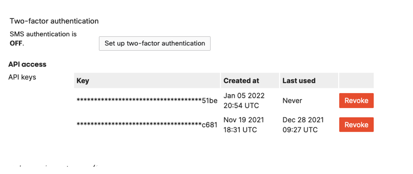 When your account details display, scroll to the API Access block and click, the button to Generate a new API key.