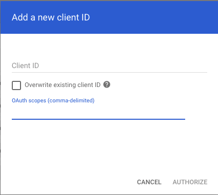 - Add the client ID with OAuth scopes