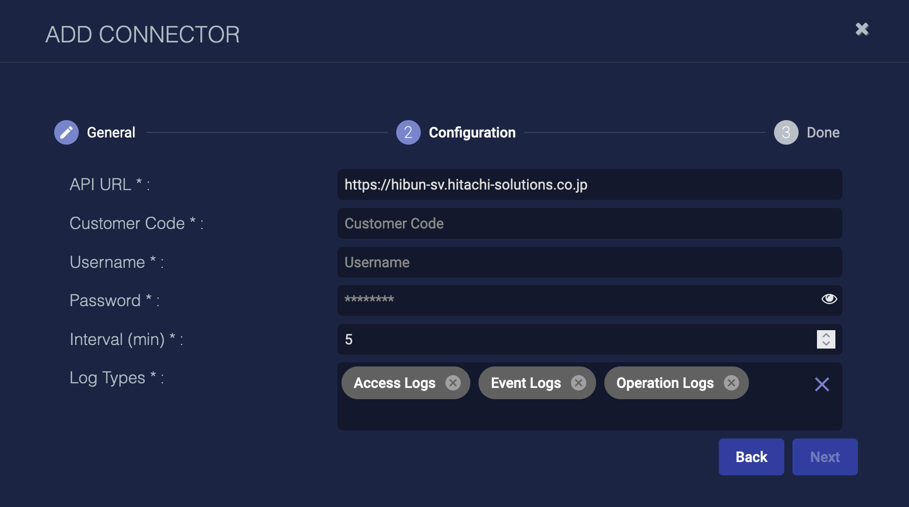 Before you configure the connector in Stellar Cyber, you must obtain the following HIBUN credentials from Hitachi Solutions at https://www.hitachi-solutions.co.jp/hibun/sp/: