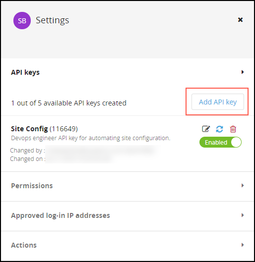 Log in to your my.imperva.com account as an account administrator (or a user with permissions to manage API keys). The permissions are: Manage users and permissions and Manage API keys.