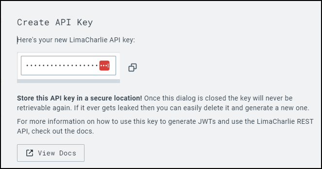 Enter the API Key you noted above in Obtaining LimaCharlie Credentials.