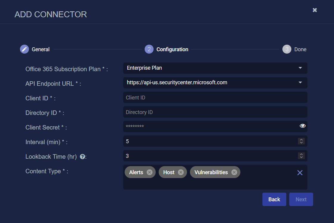 With the access information handy, you can add a Microsoft Defender for Endpoint connector in Stellar Cyber: