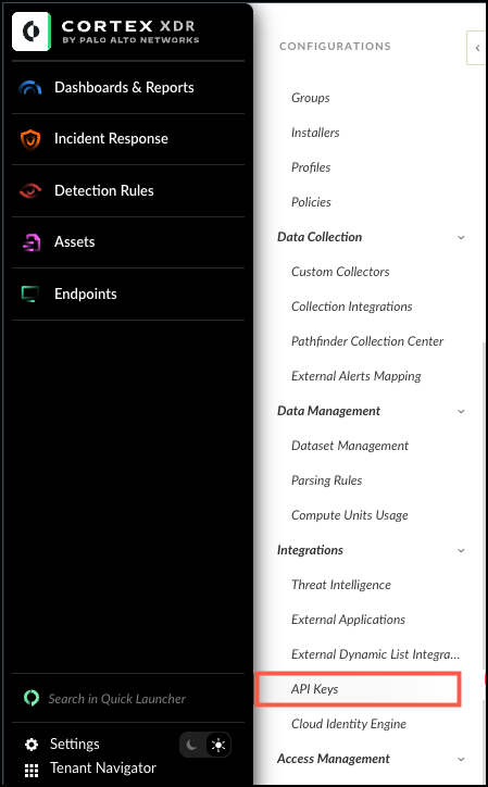 Follow the guidance in Cortex XDR documentation for Get Started with Cortex XDR APIs.