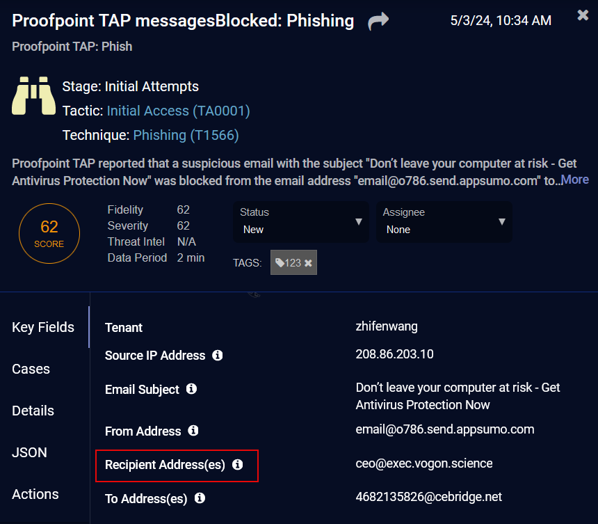 msg_classofproofpoint_tap_event.You can click the JSON tab to see the