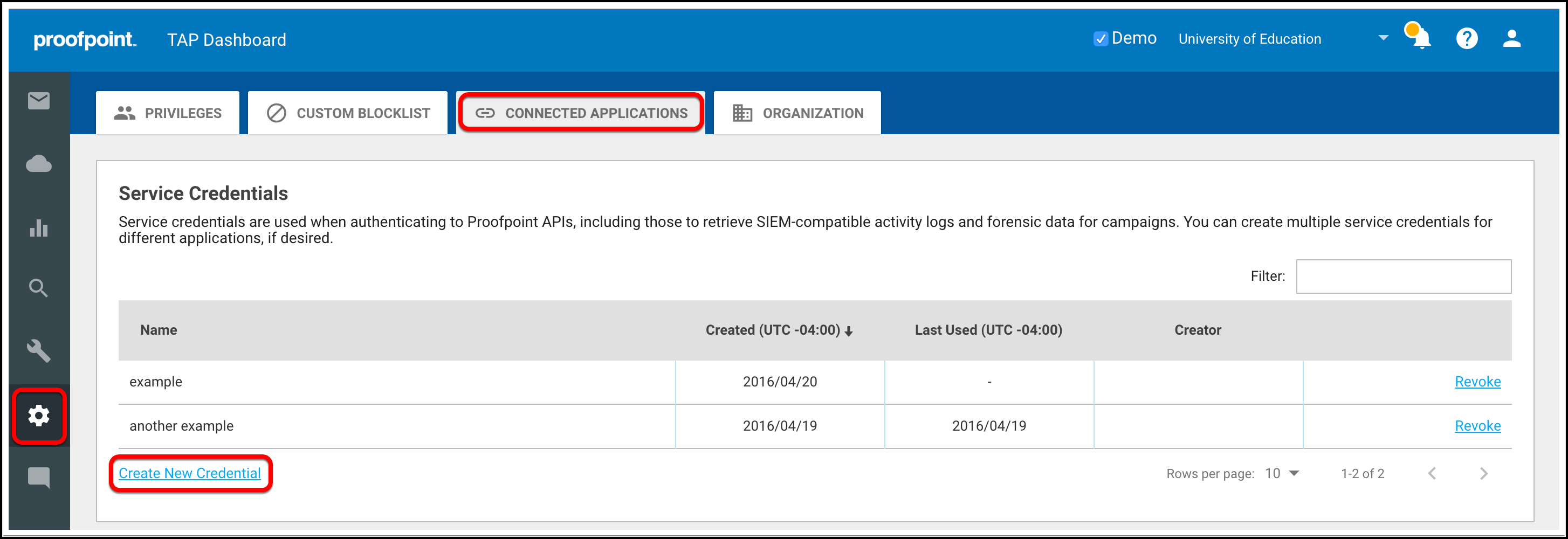 Log in as an administrative user to https://threatinsight.proofpoint.com.