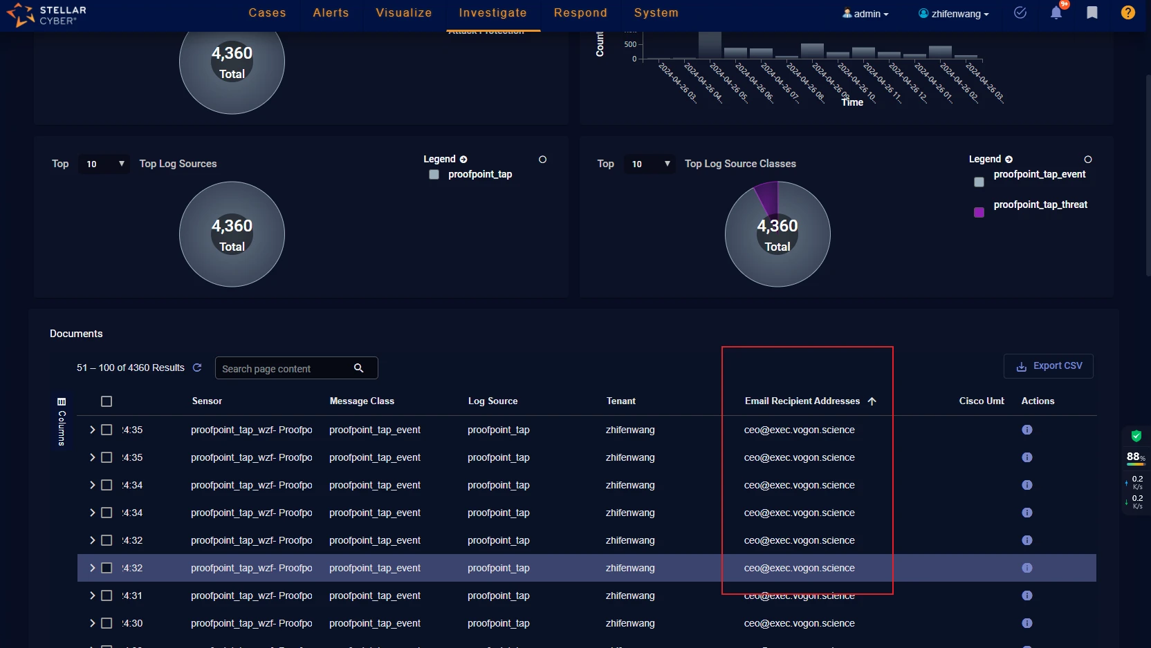 email.recipient.addresses.Or you can navigate to Investigate | Threat Hunting to see the Email Recipient Addresses.