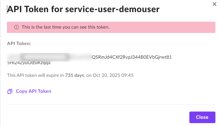 The following steps are to generate the API token from a service user: