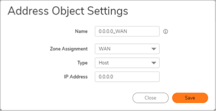 Enter the External Zone. This example uses WAN.
