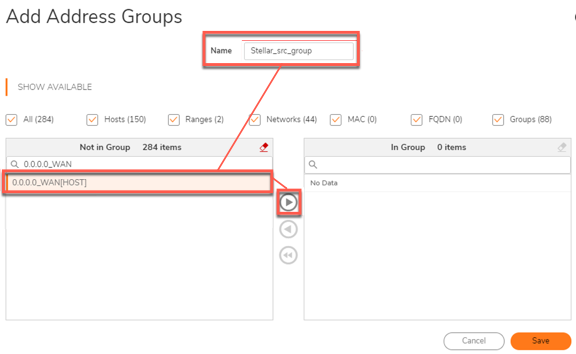 Enter the Source IP Group that you created earlier. Our example uses Stellar_src_group.