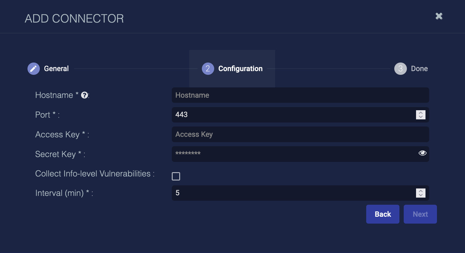 To add a new Tenable.sc vulnerability scanner connector in Stellar Cyber: