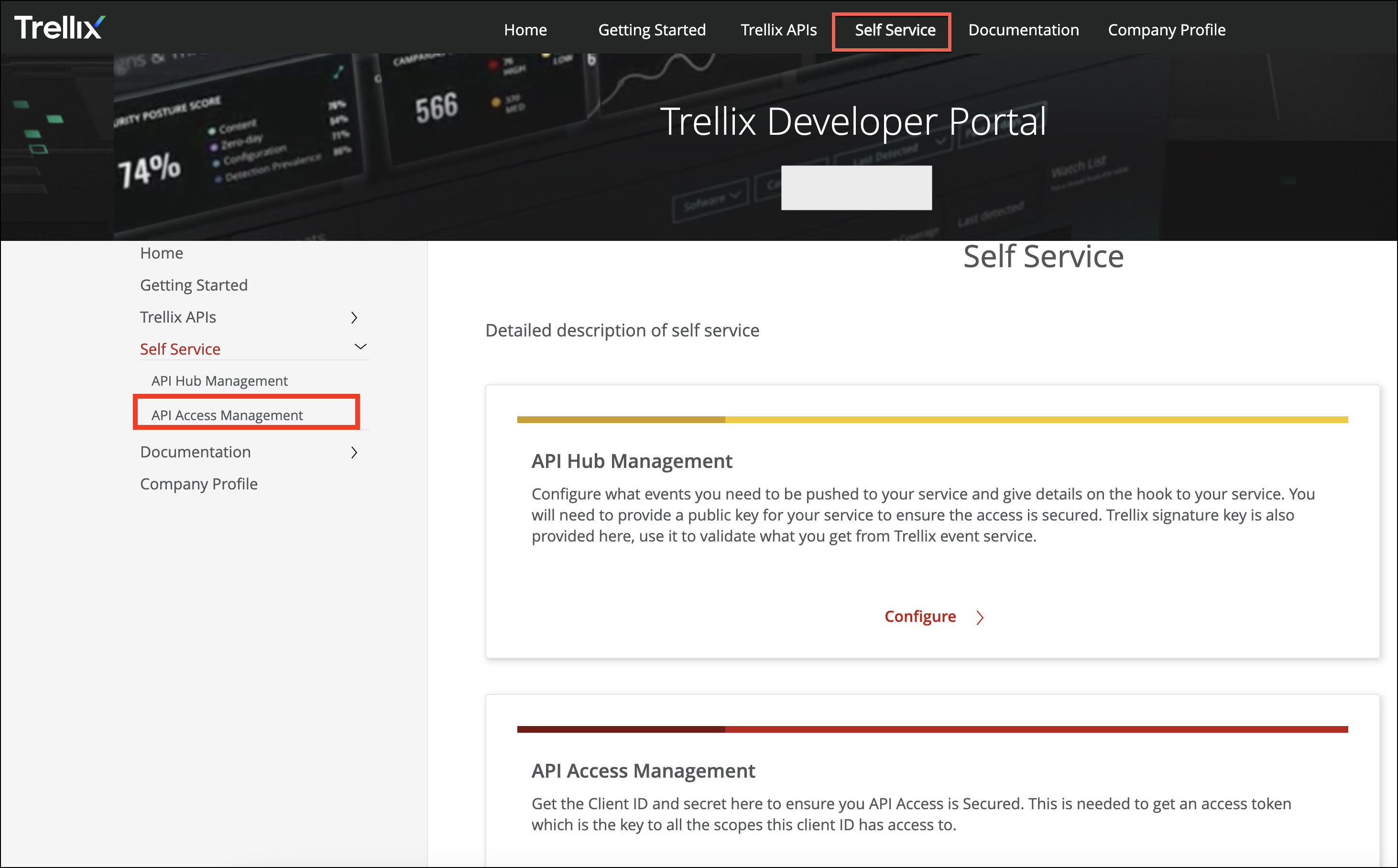 Navigate to Self Service | API Access Management.