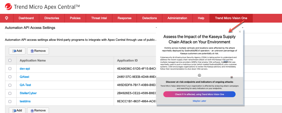 Log in to the Trend Micro Apex Central console as the user who will be associated with the Stellar Cyber app (http://manage.trendmicro.com).