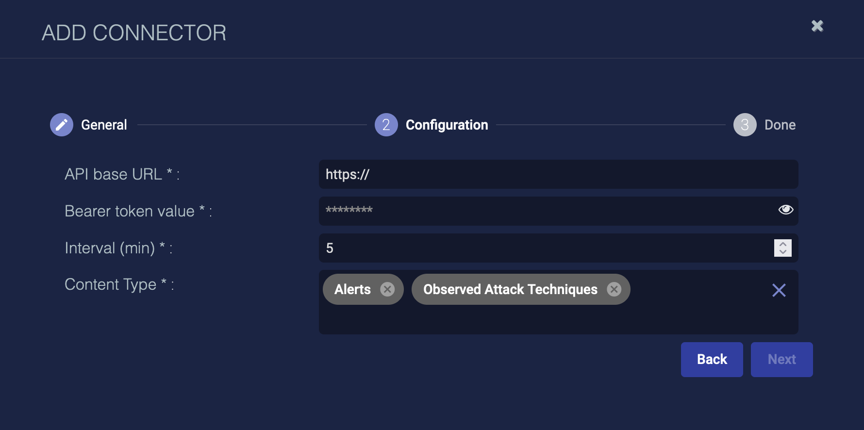 Choose the Content Type you would like to collect. The logs for Alerts and Observed Attack Techniques are supported.
