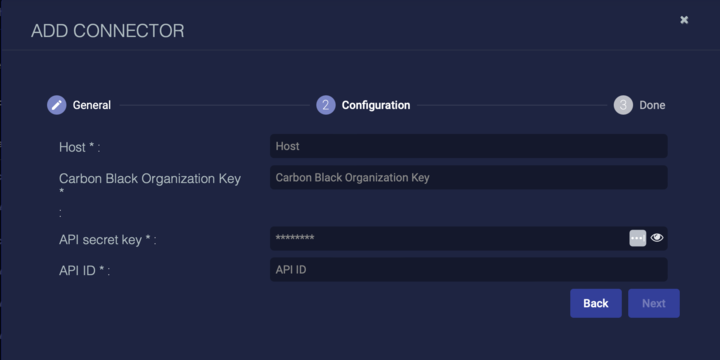 With the access information handy, you can add a VMware Carbon Black Cloud connector in Stellar Cyber: