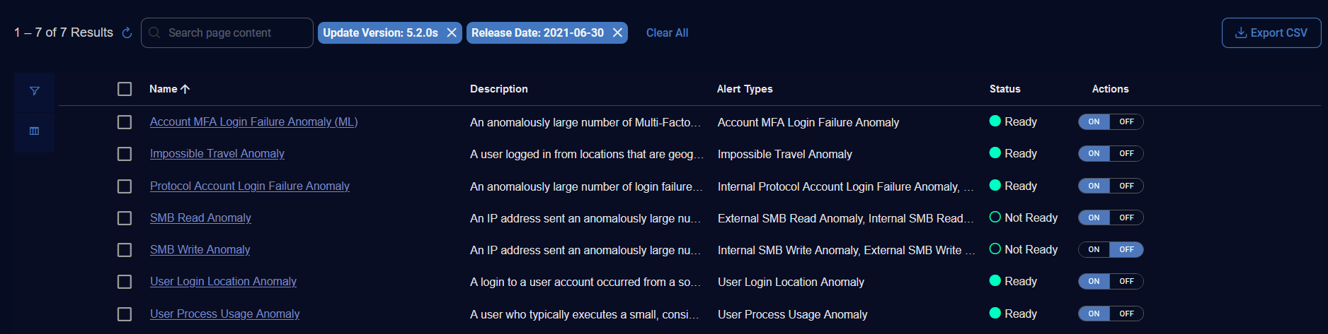 Update Version—Version in which the detection was updated in the Stellar Cyber platform.