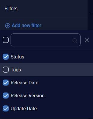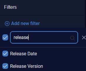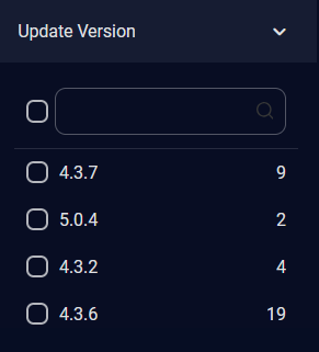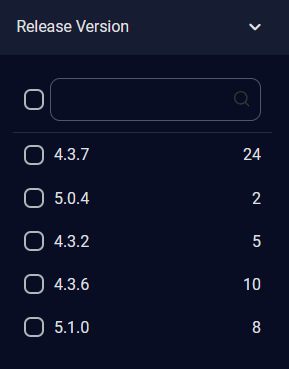 For Release Version, select the release version using the check boxes. The number of alerts of each release version is displayed on the right. A scroll bar is available on the right when there are more release versions in the list than can be displayed.