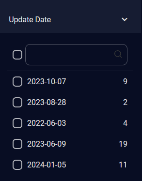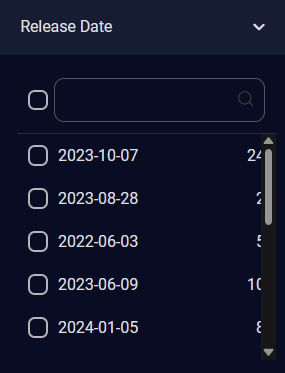 For Release Date, select a release date using the check boxes. The number of alerts of each release date is displayed on the right. A scroll bar is available on the right when there are more release dates in the list than can be displayed.