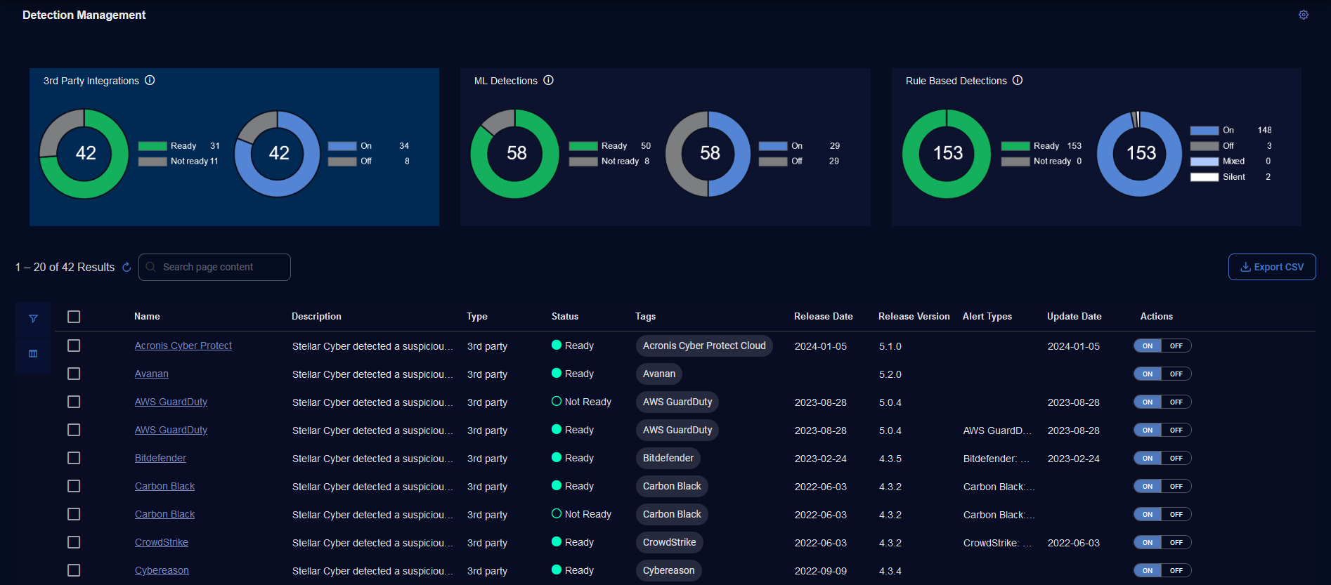 Release Version—Version in which the detection was released in the Stellar Cyber platform.