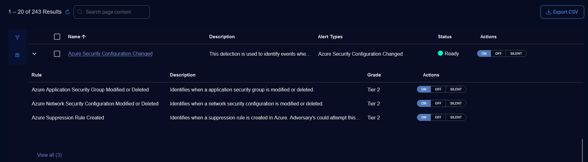 Mixed—detections that are a mix of On, Off, or Silent (only available for Rule Based Detections as this state is based on the individual rules within the detection).