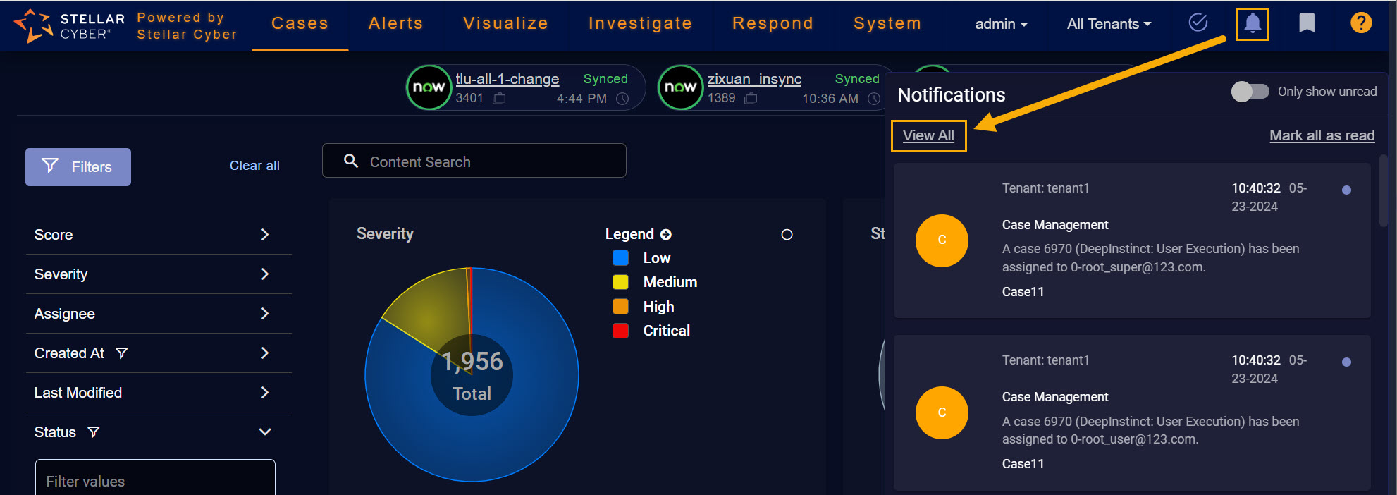 Clicking a Case Management notification takes you to the Case Detail page for the corresponding case.