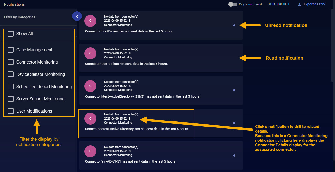 Connector Monitoring – Get notifications when specified connectors haven't sent data over a given time interval so you can address issues in real time.
