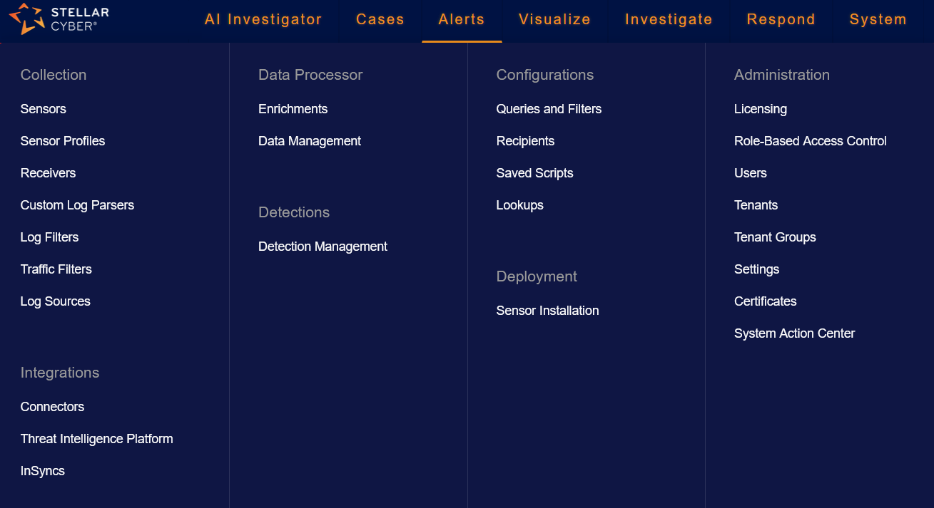 The options in these sections allow you to manage ingestion-related configurations for sensors, connectors, and third-party threat intelligence.