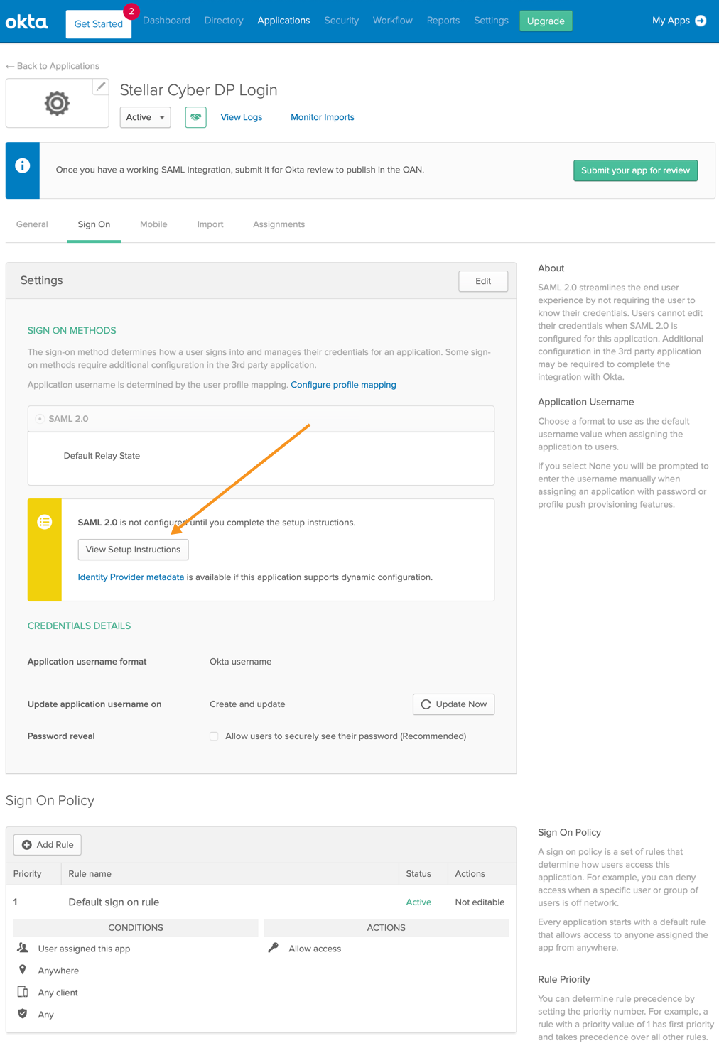Adding Stellar Cyber as a New Application in Okta