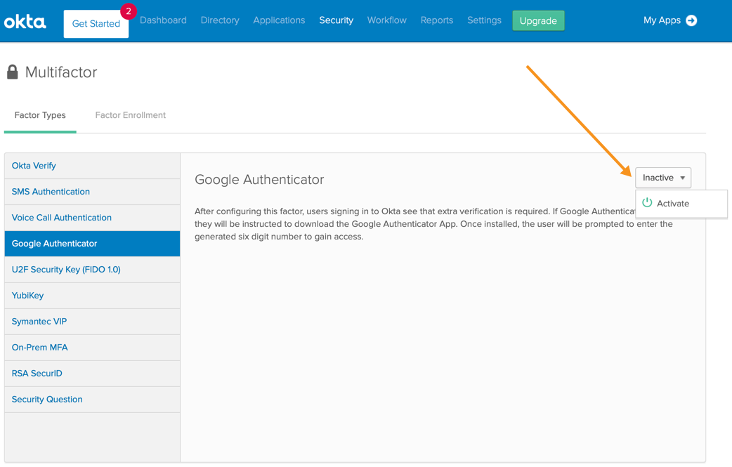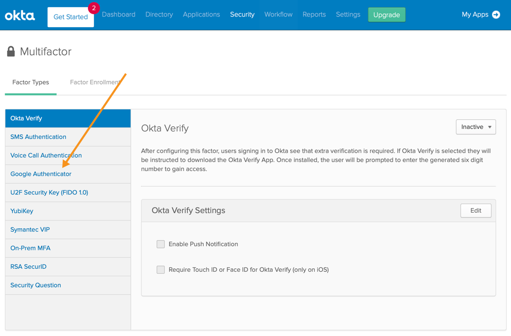 Choose a Two-Factor Authentication to the option that matches your IdP configuration: