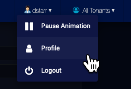 This screen is accessed from the main toolbar of the Stellar Cyber interface. Select your name on the menu bar, and then select the Profile option.