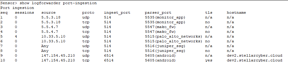• The show logforwarder port-ingestion CLI command is still available in 5.0.4+ and provides additional information relative to 5.0.2.