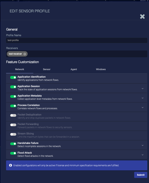 Note: When you apply a Modular Sensor Profile, Stellar Cyber automatically compares the resources required to run the template against those provisioned for the target sensor. If the resource check passes, all features are enabled. If it does not, Stellar Cyber informs you of the issue and displays the sensor in the list with a visible warning of the problem. It does not enable the sensor features until the minimum specifications are met. Refer to Modular Sensor Specifications for details on the resources required to run different combinations of features in a Modular Sensor Profile.