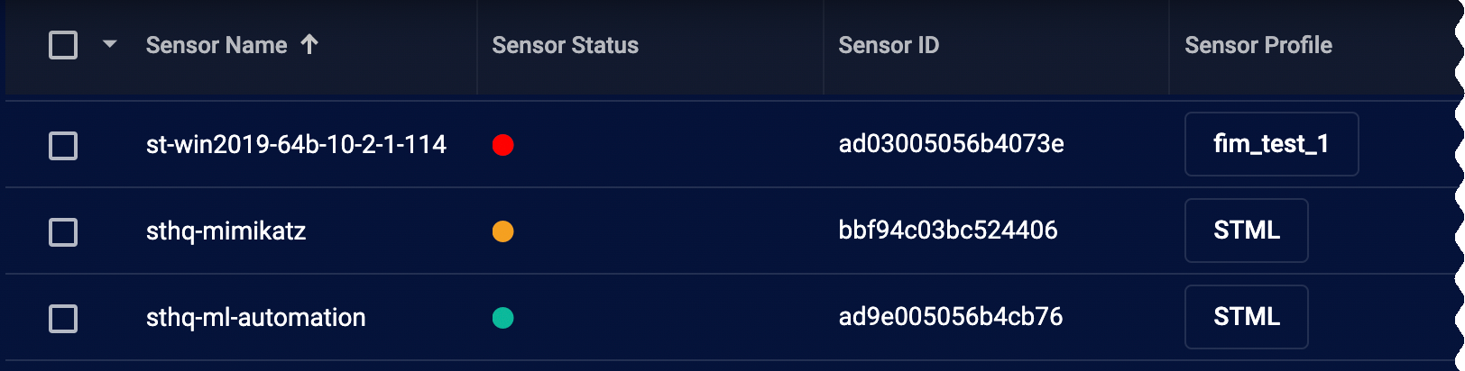 - List the known sensors with basic information such as host name, sensor ID, IP address, and software version