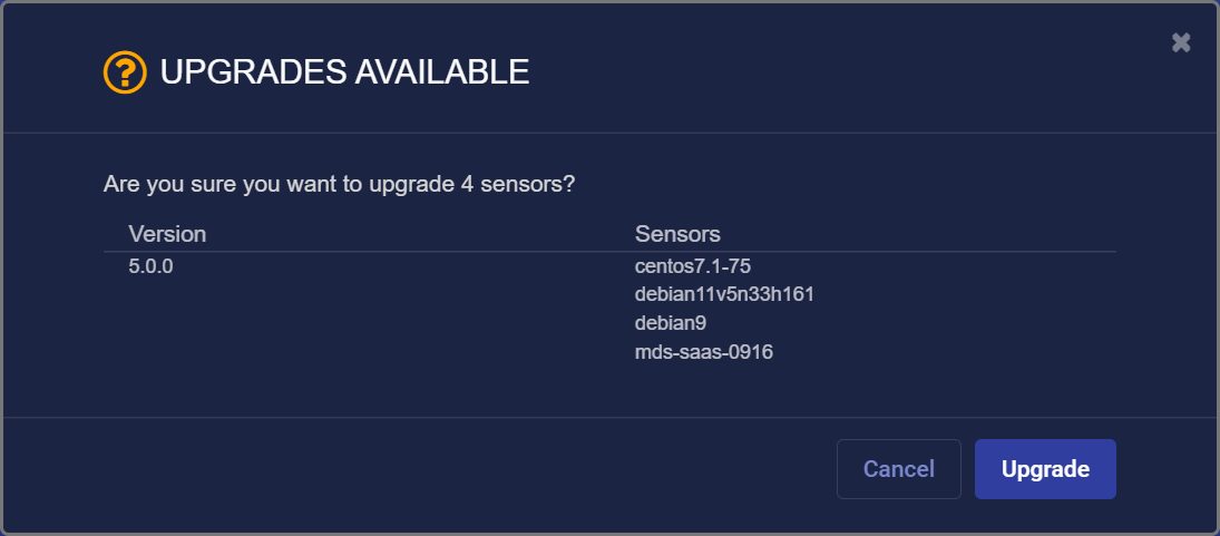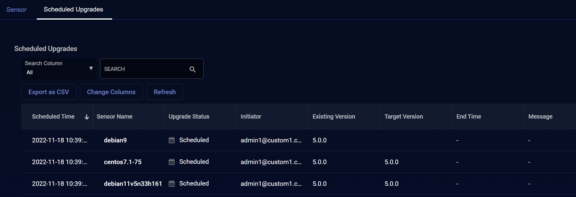 From here, you can also navigate to the Scheduled Upgrades tab to keep track of pending updates for sensors.