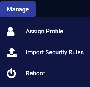 The Manage button is located above Sensor Overview table. Clicking it displays the menu shown below. These options are all related to the management of the sensors and each option displays its own dialog box.