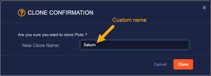If you clone a single sensor profile, you can supply your own name for the cloned profile in the dialog box that appears. For example, in the illustration below, we've cloned the sensor profile named Pluto and given it the custom name of Saturn: