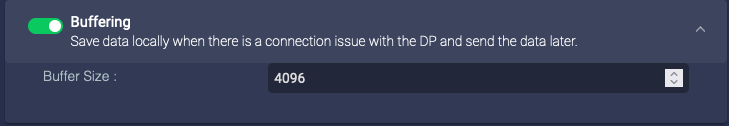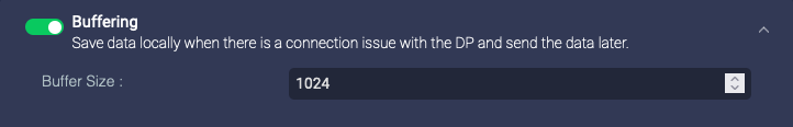 Enable this to enable buffering on the data sensors. If you enable buffering, the data sensor buffers the logs sent to Stellar Cyber. If the logs are received successfully, the sensor deletes the buffered logs. If the buffer is full, the sensor stops buffering logs. The Buffer Size parameter lets you specify the maximum size for all logs buffered:
