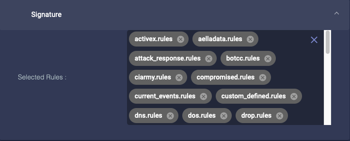 Choose the rule sets to use. These rules are integrated by Stellar Cyber from third-party threat intelligence. You can choose which rule sets to use, but you cannot add your own rules.