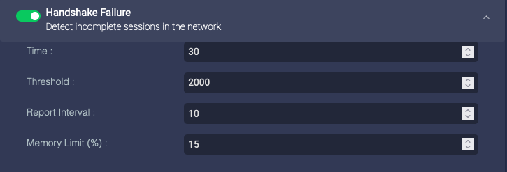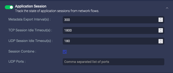 Enable this option for the sensor to identify the length of individual network sessions. The parameters specify how often to report the session information and the amount of idle time that can pass before concluding that a session has ended.