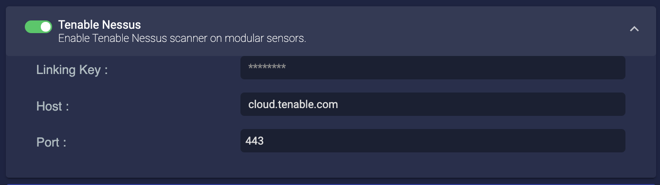 Locate the section labeled Tenable Nessus, and toggle the feature on.